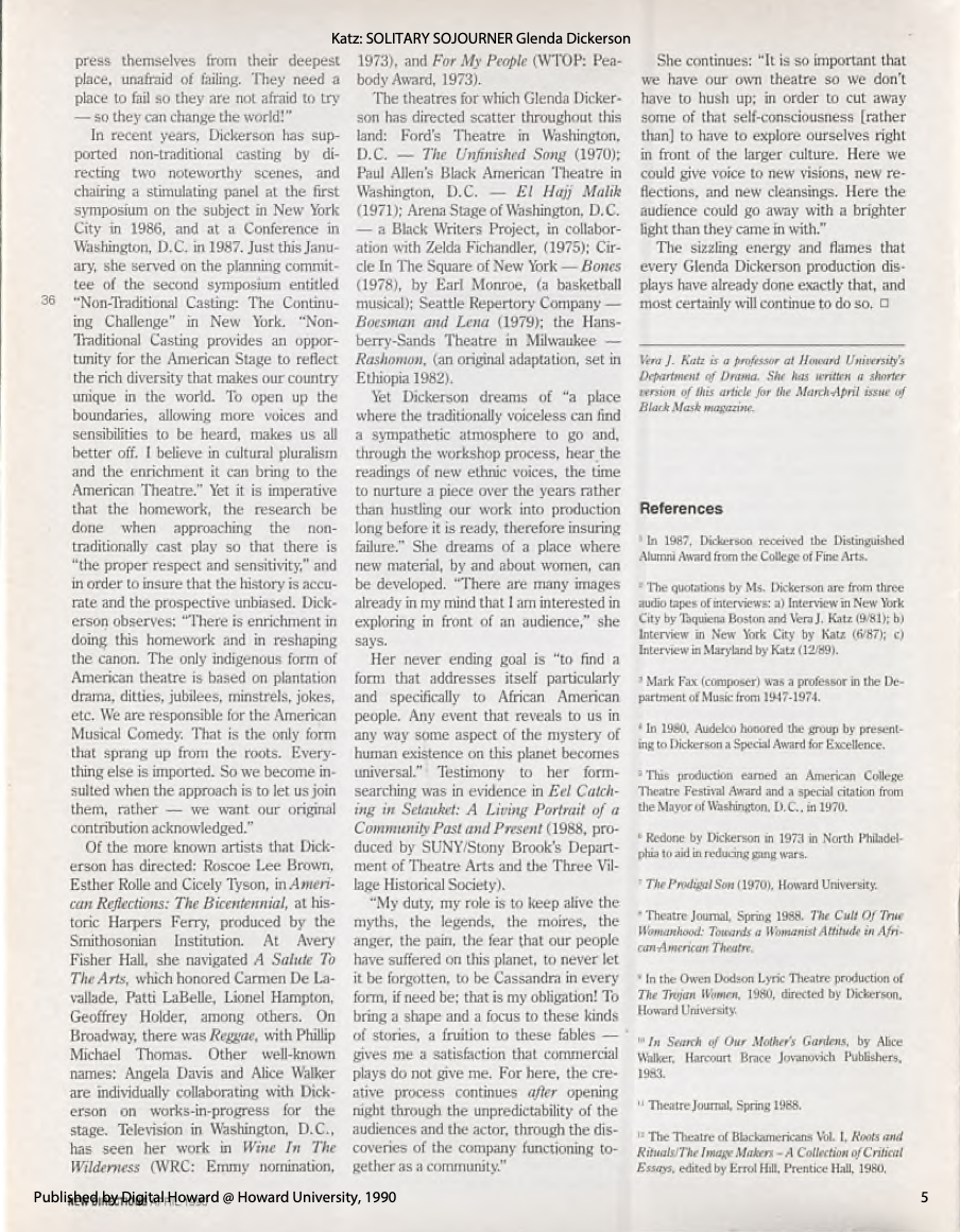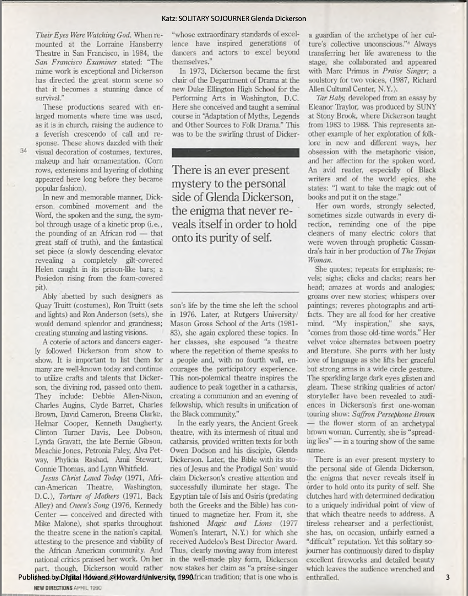 Assistant Director: Served as assistant to Lloyd Richards and assistant director for the New Federal Theatre premiere of Ossie Davis's play A Last Dance With Sybil starring Ruby Dee and Earl Hyman.