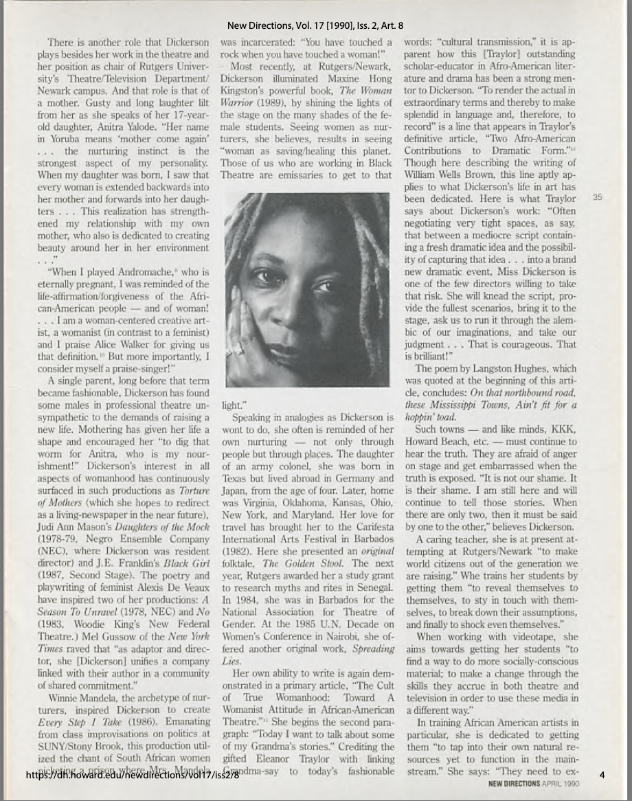 Director and Stage Manager: Has extensive professional credits in these roles, including projects at Lincoln Center, The Henry Street Settlement House (New Federal Theatre), The Negro Ensemble Company, and The Joseph Papp Public Theatre.