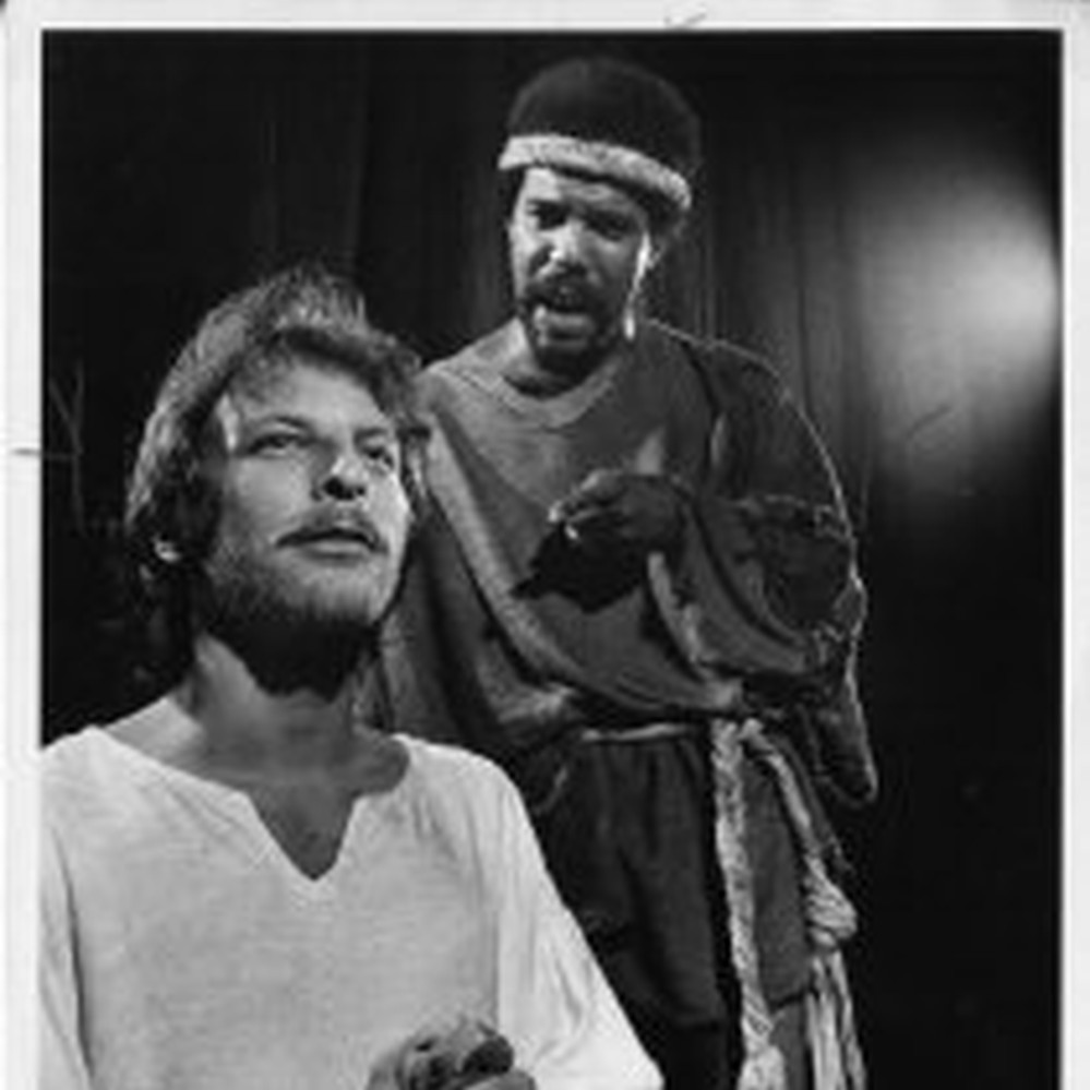 Sacramento Bee features actor Robert Hooks (rear) in his role as Judas and Robert Corff (foreground) as Jesus for the Sacramento Music Circus production of Jesus Christ Superstar. The image, dated June 20, 1975